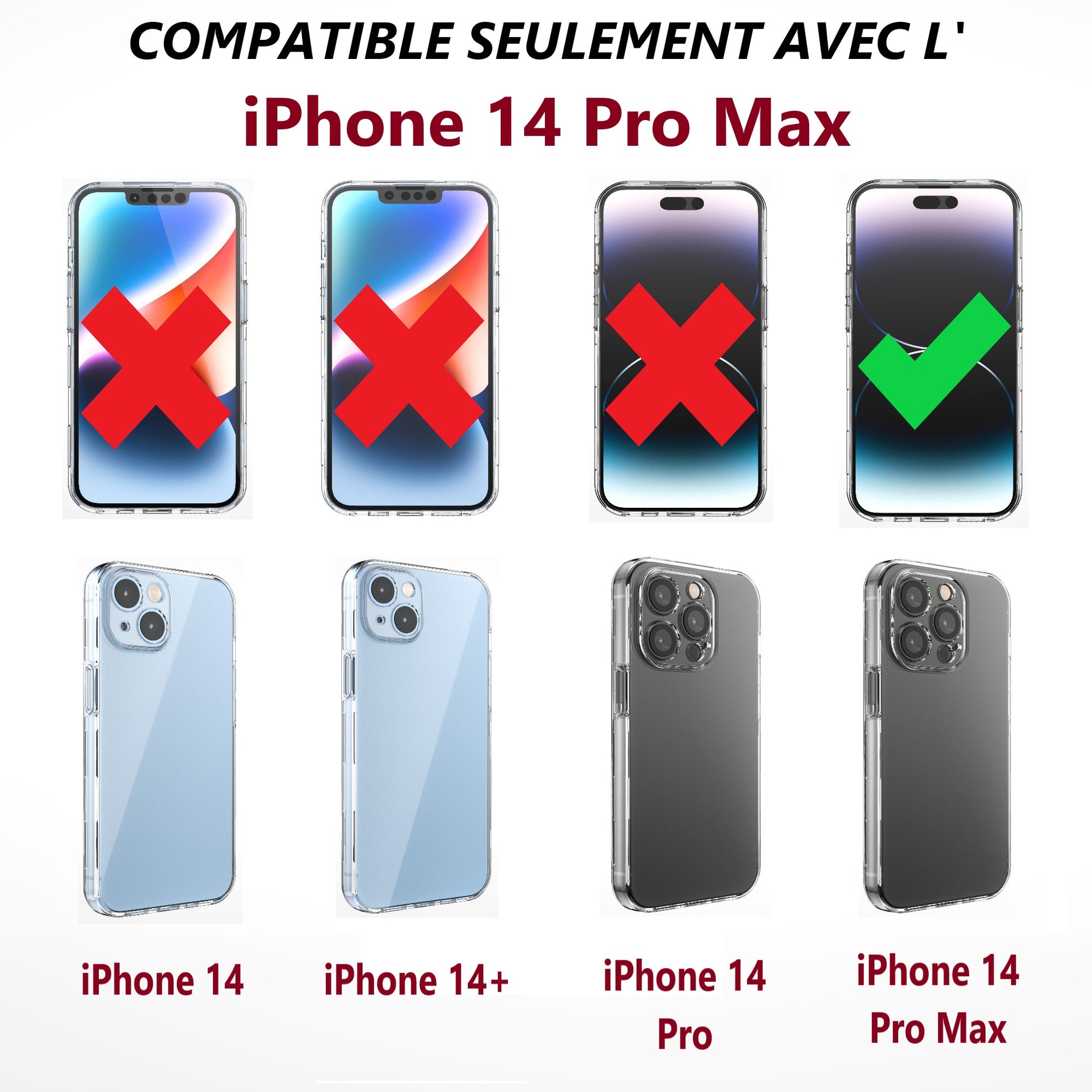 ✅• Compatible avec l'iPhone 14 Pro Max : La coque transparente est conçue seulement pour s’adapter parfaitement à ce type de téléphone mobile, offrant une protection intégrale pour votre appareil. Fonctionnel et très pratique.