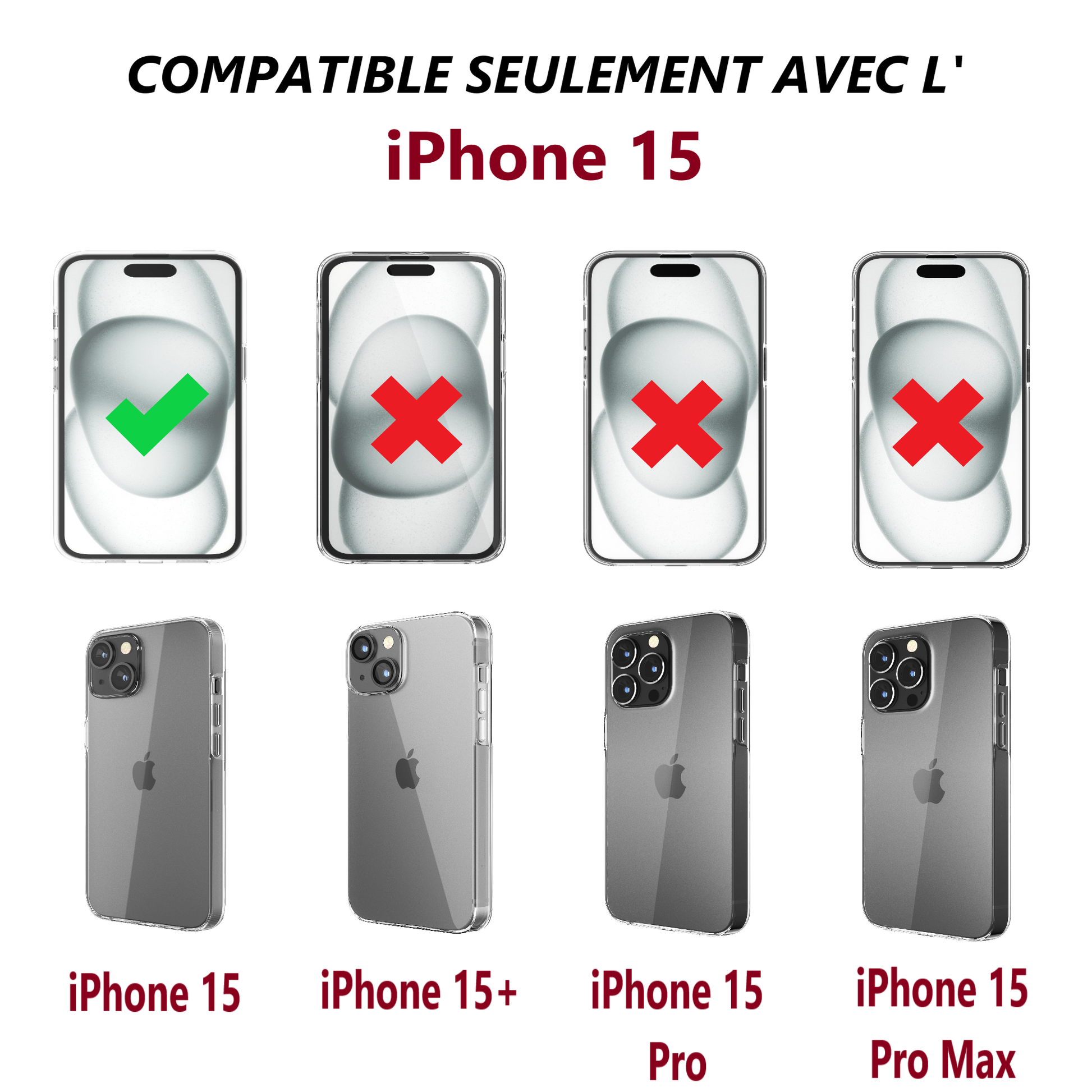 ✅• Coque Transparente : Cette coque est transparente pour que vous puissiez admirer les couleurs d’origine de votre iPhone 15. Pas besoin de motif, gardez l’original !