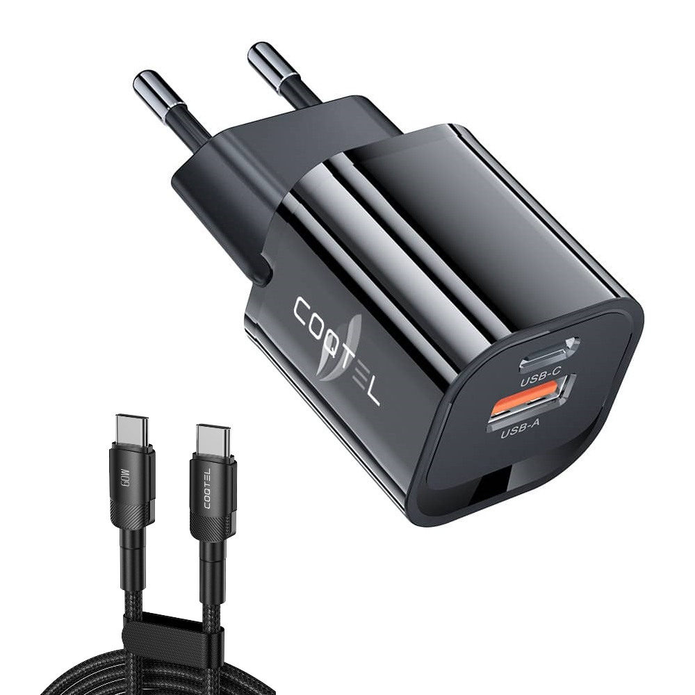Mini Chargeur Rapide 33W + Câble 60W (1m), Double Port USB-A et USB-C